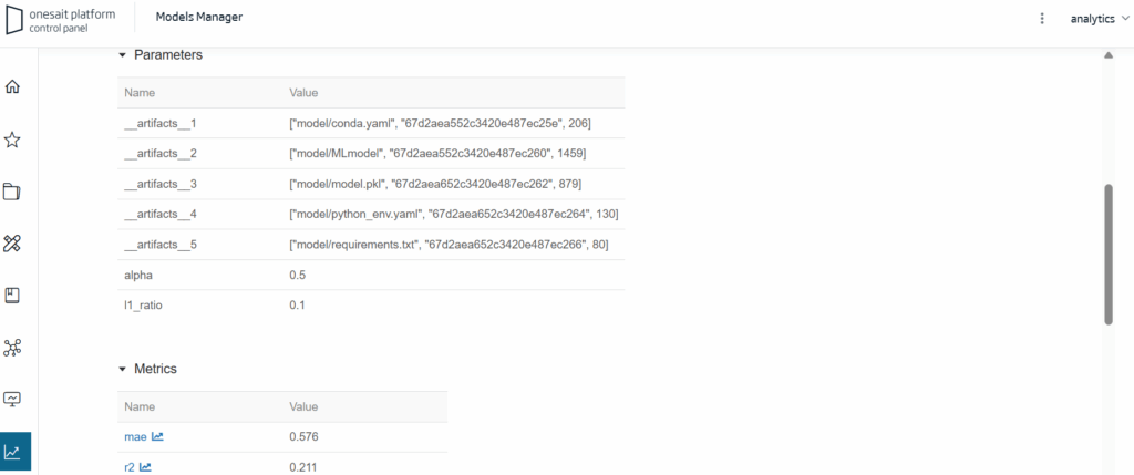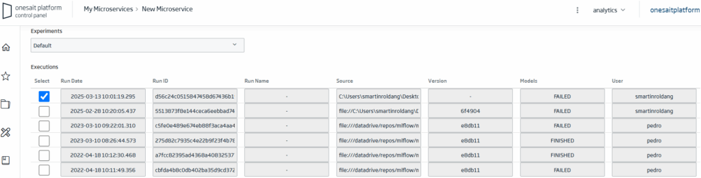 Desde la versión 7.0.0 de Onesait Platform se introduce un nuevo tipo de microservicio con el objetivo de evaluar modelos de MLFlow registrados en Models Manager.