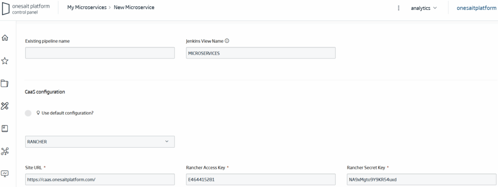 Una vez hecho esto, se pasa al CaaS donde se quiere realizar el despliegue/servicio. Para ello, se debe ir al Control Panel y, en la sección de CI/CD de nuestro microservicio, se pulsa en el icono del cohete. Esto mostrará una pantalla donde se va a poder ingresar los parámetros que se desea para el despliegue/servicio. Una vez rellenados, se pulsa en el botón de «Deploy».