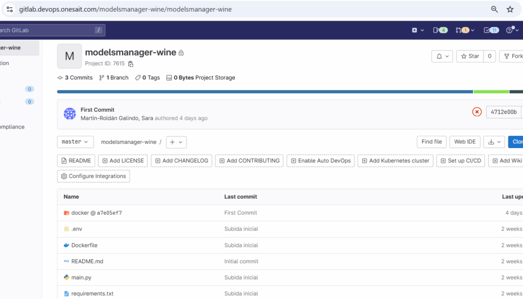 Para llevar a cabo este ejemplo se va a utilizar el MLFlow de «sklearn_elasticnet_wine», el cual se puede obtener desde este repositorio de GitHub.