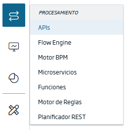 Segunda forma: se accederá al menú de Procesamiento > APIs.