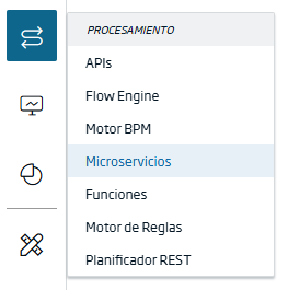 En primer lugar, se accederá al módulo de microservicios desde el menú Procesamiento > Microservicios.